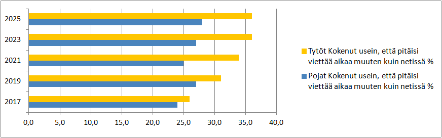 Kuinka moni tuntee, että on liikaa netissä (peruskoulun 8. ja 9. luokka)