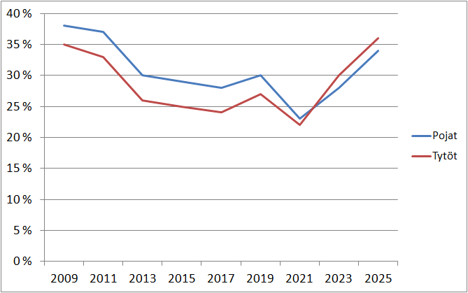 Aiemmin kysyttiin oikeudenmukaista kohtelua, nyt "reilua". Tämäkin saattaa selittää muutoksia.