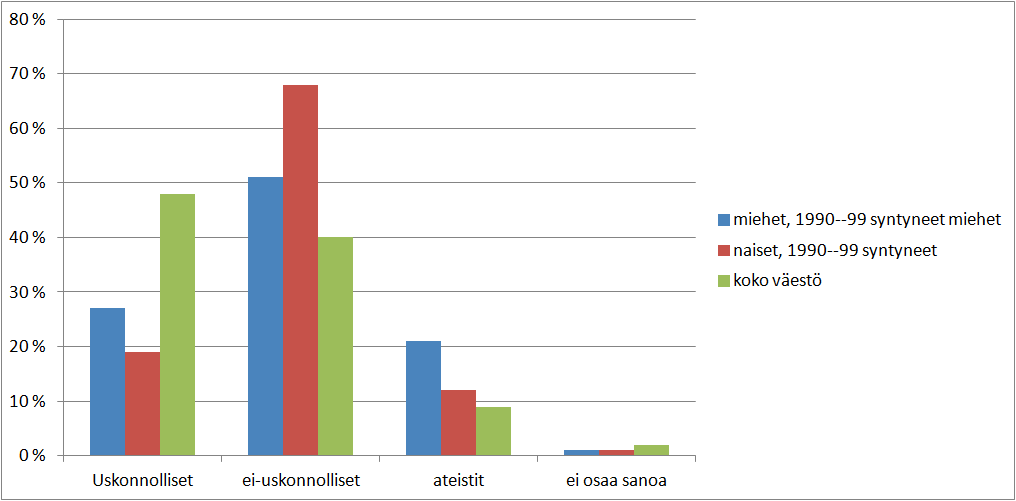 Suomalaiset asteikolla "uskonnollinen, ei-uskonnollinen, ateisti"
